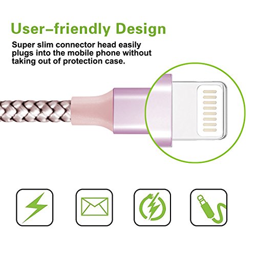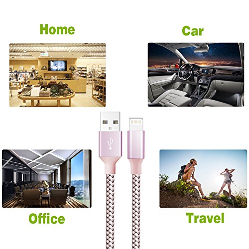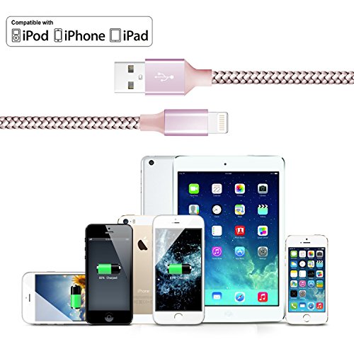 iPhone Cable,Lightning to USB Cable 2Pack 10FT Nylon Braided Cord to USB Charging Charger for iPhone 7/7 Plus/6S/6S Plus,SE/5S/5,iPad,iPod Nano 7 (Rose Gold,10FT)