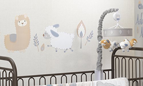 Finish off your designer nursery with Lambs & Ivy's easy on easy off wall appliques. These showcase our happy little llama named Dali and his best friends along with decorative leaves and the saying, "Adventure Awaits."