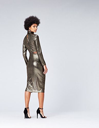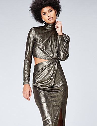 FIND Damen Metallic-Kleid mit Hochstellkragen und Schlitz-Details