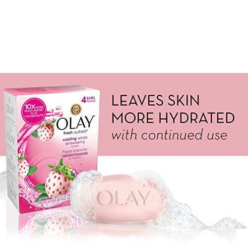 Olay Fresh Outlast Cooling White Strawberry and Mint Beauty Bar, 4 Count, Packaging May Vary