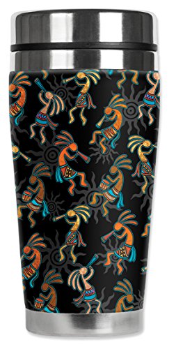 Mugzie 5400-MAX "Kokopelli" Stainless Steel Travel Mug with Insulated Wetsuit Cover, 20 oz, Black