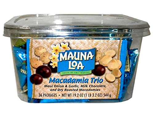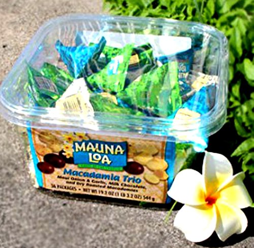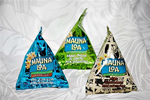 Macadamia Trio 36 Assorted Bite Size Packs (Maui Onion & Garlic, Mike Chocolate, and Dry Roasted Macadamias)