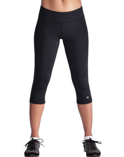 Super-sleek women's knee tights from our PowerTrain collection. With Double Dry™ moisture control for a cooler, drier workout. Plus PowerFlex stretch for comfortable ease of movement. Stretch the possibilities. Wear these Champion women's knee tights to stay cool, dry, and totally flexible. Silky Double Dry™ fabric wicks moisture for sweat-free comfort. PowerFlex 4-way stretch allows freedom at every turn. Tag-free contoured waist provides streamlined feel-good fit. Contrasting side panels visually slim your look. (Black tights have tonal black panels.) FITTED styling, with stretchy lined gusset, non-chafe flat-locked seams, and 17-inch inseam.Feature