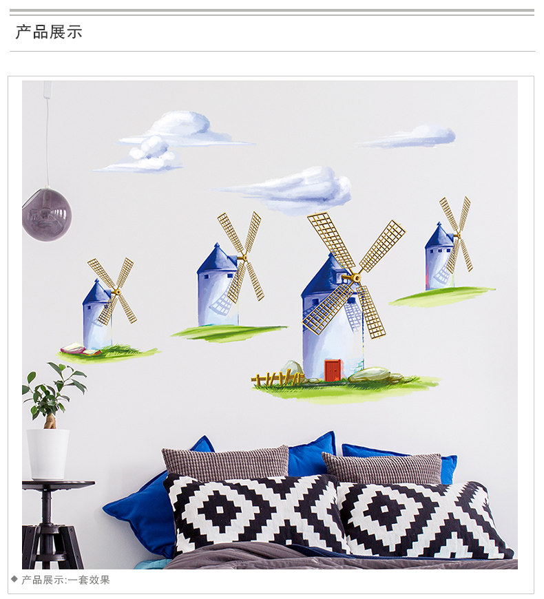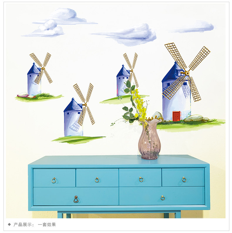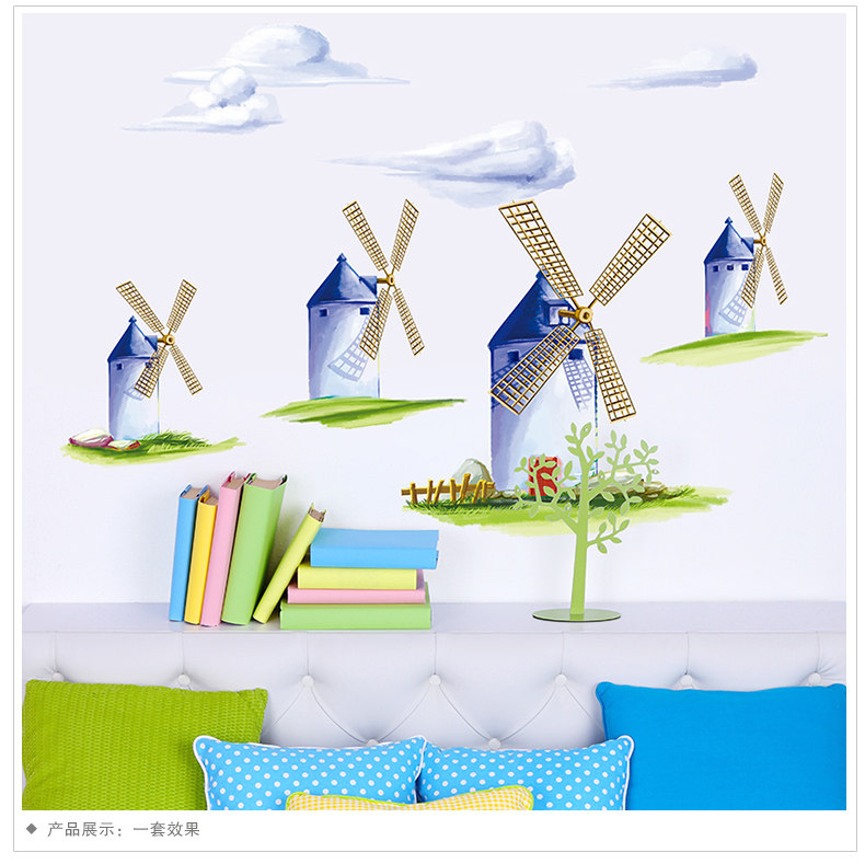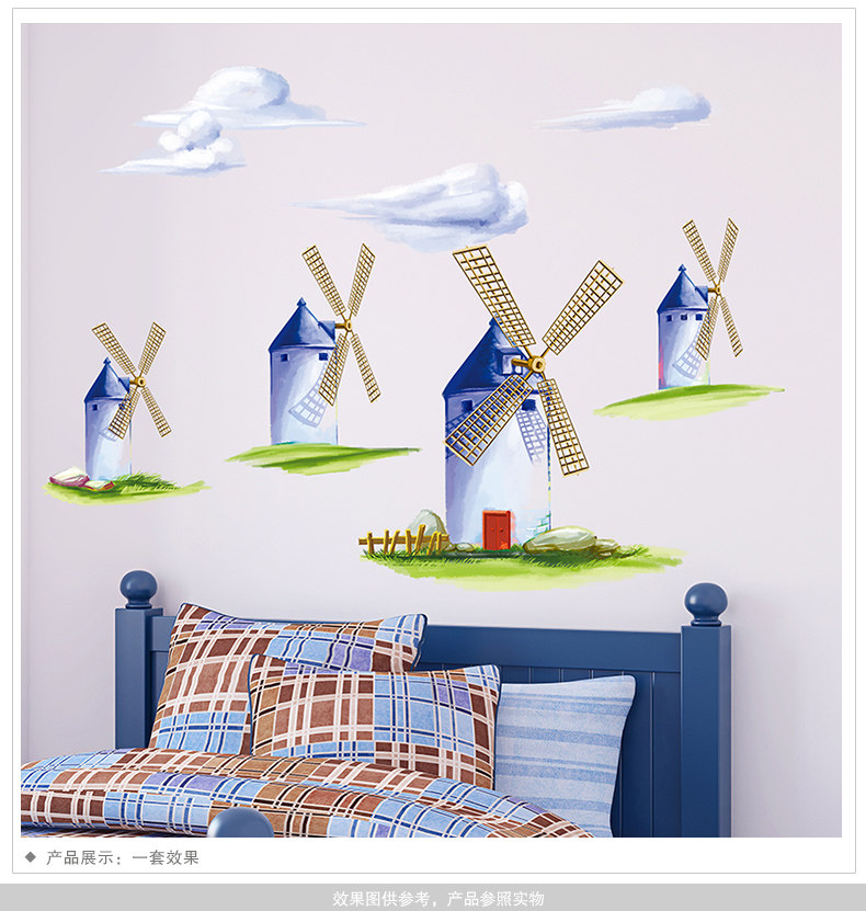 田园风车温馨可移除墙贴欧式背景墙床头卧室客厅房间装饰贴纸自粘