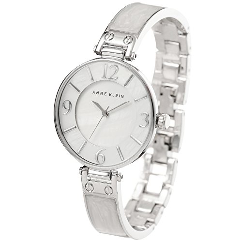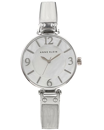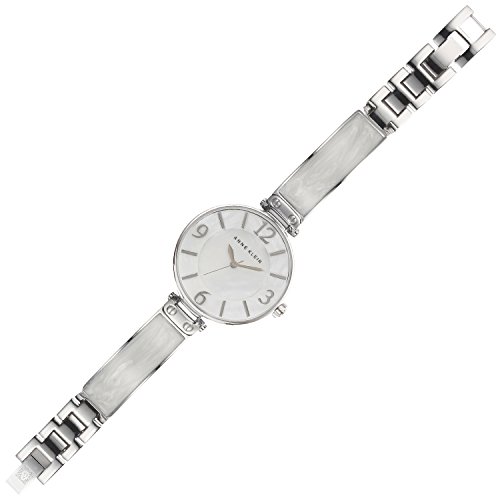 Studio : AK Anne Klein Publisher : AK Anne Klein Binding : Watch Product Description Silver-tone metal case. Marble acetate bracelet with jewelry clasp closure. Round face. Three-hand analog display with quartz movement. Mother-of-pearl dial features silver-tone hour markers and hands and Anne Klein detailing. Water resistant 100ft. 0