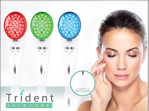 The new Cordless Bright Therapy Trident SR11A gives you 3 LED Lights in 1! The hand held LED Cluster employs SUPER BRIGHT High Power LED Lights Therapy treatments to beatify your skin. BT-SR11A offers 4 different LED color frequencies. Featuring 3 detachable LED Cluster heads! The Trident works great for giving a more beautiful, radiant and youthful complexion. It is the ultimate non-chemical, all natural approach to beautiful skin. The Trident's High Power High Output LEDs are rated at over 10,000 hours of continuous use. They will never burnout or need to be replaced. The Trident's mono-chromatic light is tuned to preciously to give the maximum benefit and effectiveness. Safe, fast, affordable. Included are the: *LED hand held base. *Red and Infrared SUPPER BRIGHT LED treatment head (660nm Red and 880nm Infrared) *Blue SUPPER BRIGHT LED Treatment Head (415nm Blue) *Green SUPPER BRIGHT LED Treatment Head (525nm Green) *110-240v AC Adapter which works worldwide. (USA style plug shape) *Instruction booklet in English *1 year warranty -Programmable pulsing (5Htz) -Built in 10 minute timer with auto shutoff.Feature