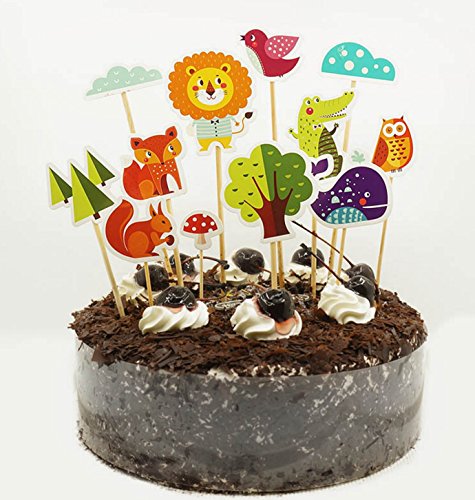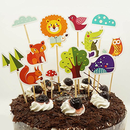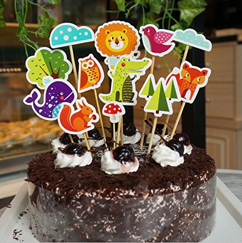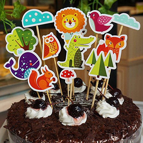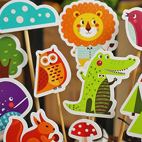 Maydolbone 24Pcs Zoo theme Cupcake Toppers,Food Picks Baby Shower Decor And Birthday Party Decoratio