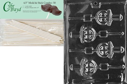 Cybrtrayd 45St50-B036 Pacifier Lolly Baby Chocolate Candy Mold with 50-Pack 4.5-Inch Lollipop Sticks
