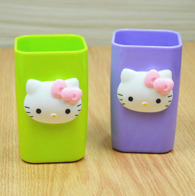 Hello kitty清新塑料方口杯牙刷杯