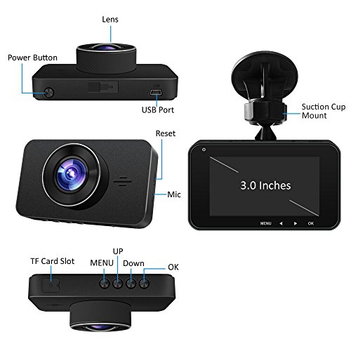 - 【170°Wide Angle 6G Lens】This dash cam With SONY 323 Sensor 6G Lens , 170 degree high resolution wide angle lens , 3 inch display screen with light weight and records crystal clear video