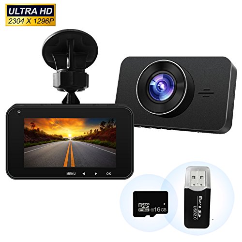 Dash Cam in Car Camera 1296P FHD Dash Cam Video Recorder with Sony 323 Sensor 6G Lens 170 Wide Angle 3 Inch Screen WDR Loop Recording G-Sensor 16GB SD Card