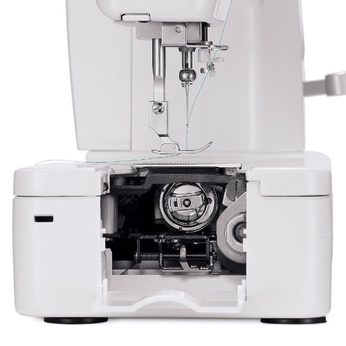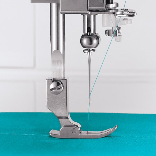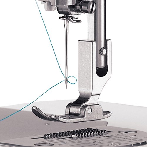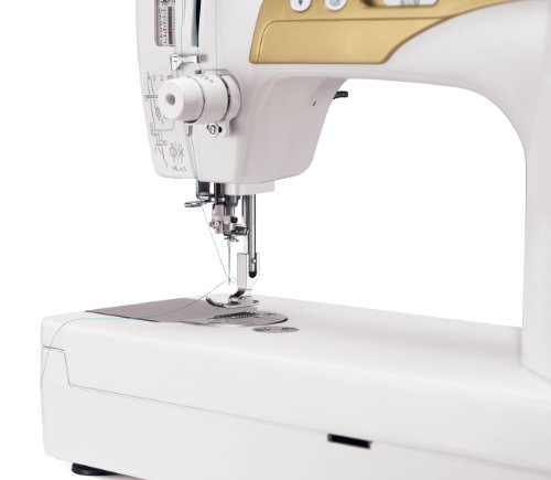 -. Feature : True Straight Stitch Machine ensures a perfect straight stitch and precise fabric handling / Industrial Strength sewing speed of 1,600 stitches per minute / Easy Threading, Automatic Needle Threader & Presser Foot Sensor ensure an easy start / Programmable Needle Up/Down and Knee Lifter are perfect for piecing quilt tops / Quarter Inch Foot, Narrow Rolled Hem Foot, Free-Motion Foot and Darning Plate Included