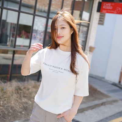 어디에 매치해도 예쁜 기본 라운드넥 레터링 티셔츠!