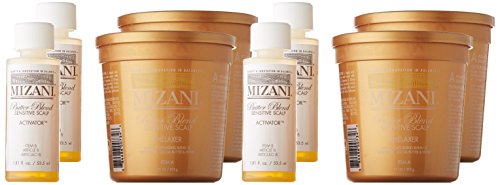MIZANI Butter Blend RHELAXER IMPORTANT:BEFORE RELAXING : DO NOT SHAMPOO. Check condition of hair and scalp. Avoid vigorous brushing, combing or tugging. Wearing protective gloves, conduct strand test using "Relaxer Application" directions. Proceed only if hair and scalp are in good condition. MIXING : Pour one conditioner of MIZANI BUTTER BLEND SENSITIVE SCALP ACTIVATOR (item B) into jar containing MIZANI BUTTER BLEND SENSITIVE SCALP Relaxer Base (item A). Using mixing spatula stir together until product is uniform and free of lumps. Let mixture sit for 5 minutes. TIMING CHART - APPLICATION AND PROCESSING HAIR TYPE MAXIUM TIME COLORED-TREATED OR POROUS 10-15 MINUTES FINE 18-18 MINUTES NORMAL TO COARSE 18-20 MINUTES CONDITIONING & NEUTRALIZING DIRECTIONS : Apply and distribute MIZANI perpHecting Creme Normalizing Conditioner to hair and cover with plastic cap. DO NOT USE HEAT! Leave in for 10 minutes. Rinse thoroughly. Apply 1 to 11/2 oz. MIZANI Butter Blend Sensitive Scalp Balance Hair Bath to hair. Lather and rinse thoroughly with warm water. Repeat steps 4 and 5 SIZE : NET WT.7.5 OZ / 213 g MIZANI Butter Blend ACTIVATOR (ITEM B) Sensitive Scalp Formula IMPORTANT : Before applying to hair, thoroughly mix with Butter Blend Sensitive Scalp Rhelaxer (ITEM A). SIZE : 2.0 FL OZ / 59 ml