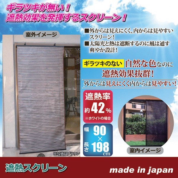 【商品名】遮熱スクリーン(カーテン/サンシェード) 幅90cm×長さ198cm 日本製 ブラウン 〔日焼け防止/遮光効果/紫外線防止〕