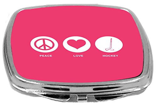 Rikki Knight Peace Love Hockey Design Compact Mirror, Tropical Pink, 2 Ounce