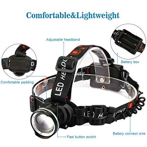 Best LED Headlamp,CrazyFire 1600 Lumens XML-T6 CREE Hunting LED Headlamp,Zoomable 3 Modes Runners Headlamp for Outdoor Reading,Hiking,Camping,Running,Jogging,Climbing,Fishing,Hunting(Black)