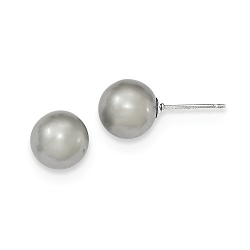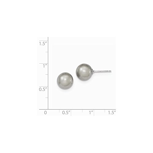 Solid 925 Sterling Silver 9-10mm Grey FW Cultured Round Simulated Pearl Stud Earrings