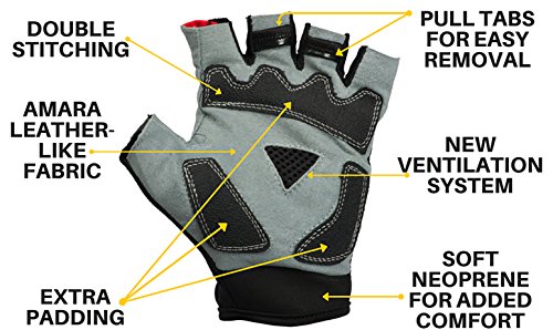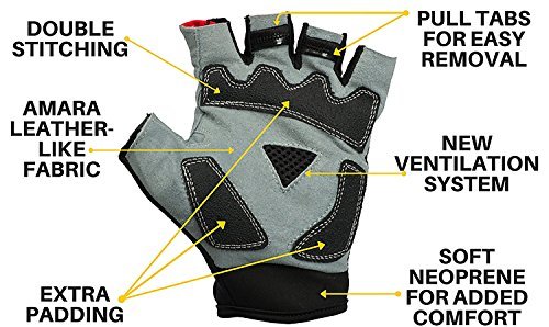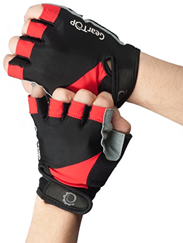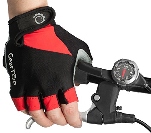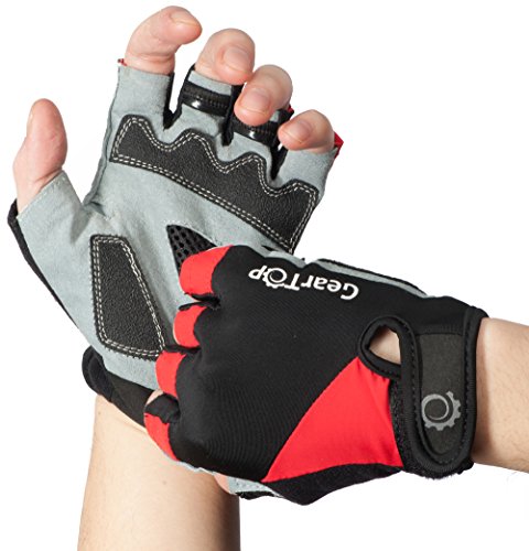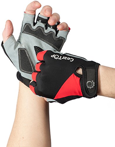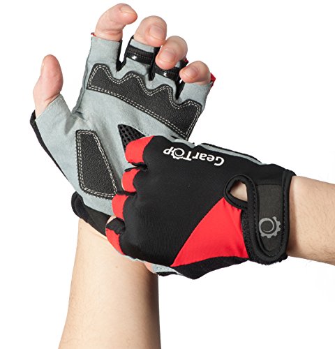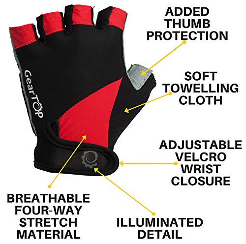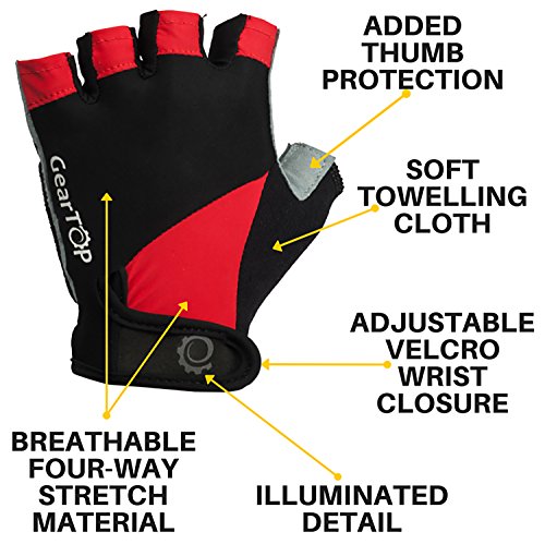 The GearTOP Half Finger Gloves provide all the comfort, protection and quality you need while being outdoors! With a classic style and a tailored great fit, this pair of gloves is a great choice for recreational riders, beginner cyclists, gym goers and anyone else who loves the outdoors The soft touch Amara palm is double stitched at all stress points in order to ensure long lasting wear Gel-foam palm padding is strategically placed to relieve pressure on sensitive nerves and reduce hand numbness. Gel pads absorb all shock, allowing for a more comfortable ride Mesh, located on the palm face, greatly reduces sweat build up, and keeps your hands cool The added pull tabs, allow you to pull the gloves off easily and quickly, and the hook and loop wrist closure ensures the glove fits you just right Half finger gloves allow for easy touch screen phone capability Offering professional, high quality, attractive half-finger cycling gloves at an affordable price A few last things you should know: Cyclists should always wear gloves in order to absorb shock and reduce numbness in the hand. In addition, gloves can be used to wipe the sweat and act as added hand protection in the event of a fall Measure the width of your palm to determine glove size: M= 3.31"-3.50"= 82mm-90mm | L= 3.50"-3.75"= 90mm-96mm This is a NO RISK Purchase: All GearTOP Products are backed by a Hassle Free 100% Premium Lifetime Guarantee with a personal commitment from our company to ensure YOUR satisfaction! Don't wait for this sale to end! Go to the top of this page and click the ADD TO CART button to start enjoying your new gloves today! 0 |