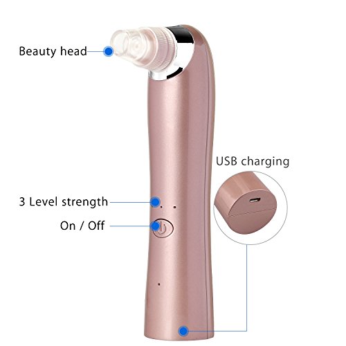 - Electric Blackhead Extractor Comes with 4 changeable beauty suction heads, which can offer different functions and offer a deeper clean for your facial skin , 3 levels adjustable suction makes it suitable for different skin.