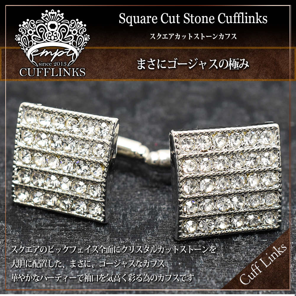 ■ 商品名 : カフス スクエア ラインストーン カフスボタン