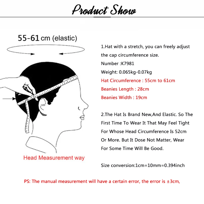 Beanies hat size: One size with good stretch ,for 55-61cm