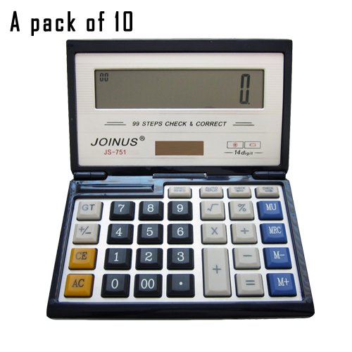 -. Title : Pack of 10, JOINUS JS-751 Dual Power Executive Foldable Style 14 Digit basic Calculator