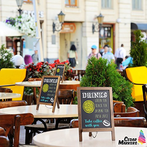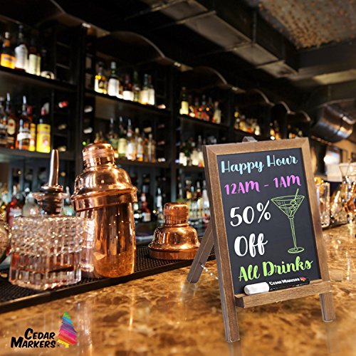 ⚡ PERFECT SIZE - Perfect size 14"x9.5" for placing on the kitchen table, as a center piece in your wedding or on the bar, without worrying it will tip over. Use our Cedar Markers™ chalk markers to draw attention to your sign. The writing surface is 10.5”x8”.