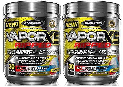 -. Title : MuscleTech VaporX5 Ripped Explosive Energy Preworkout 60 Servings (2x30 Serv) Icy Rocket Freeze