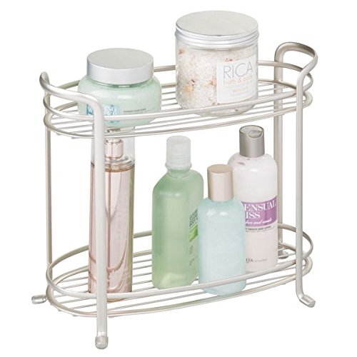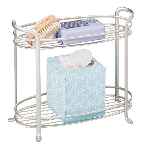 Studio : MetroDecor Publisher : MetroDecor Product Description mDesign's two-tier Bathroom Storage Shelf adds instant storage to your vanity or bathroom countertop. Its compact size fits into even the smallest bathroom spaces while its tiered design allows for maximum storage. Feet protectors prevent scratches on bathroom surfaces while the sturdy design makes it a perfect way to display candles, lotions, toiletries and more! 0