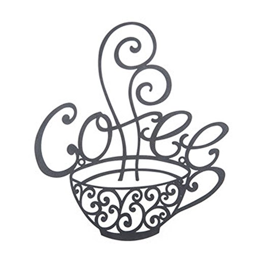 14" Large Black Metal Coffee Cup Mug Scrolled Silhouette Metal Wall Art Decor Interior Decoration