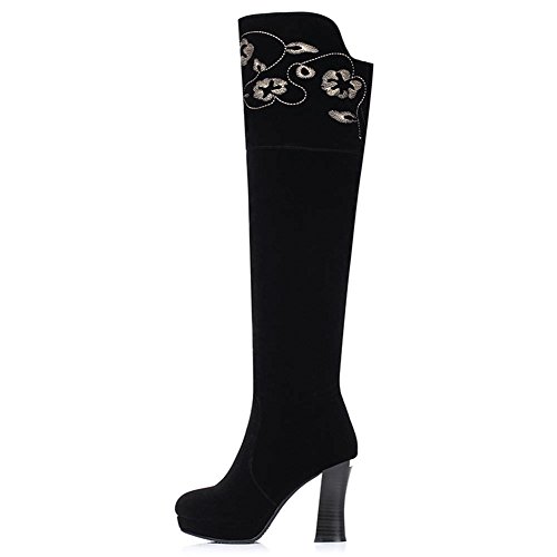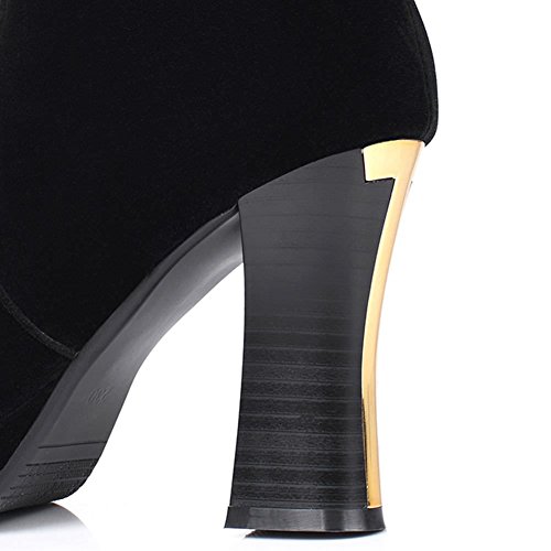 (DecoStain)/Women's/Boots/DIRECT FROM USA/DecoStain Women's Nubuck Leather Block Heel High Heel Boots