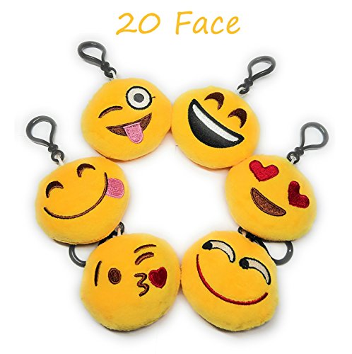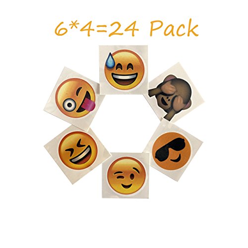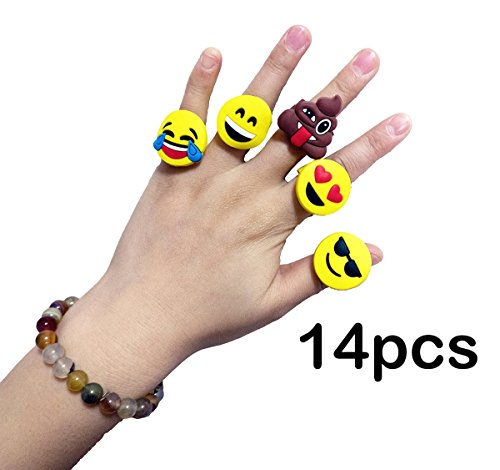- Includes 14 emoji rings, 18 bracelets, 4 sheet sticker, 24 tatoos, 20 keychains.