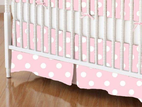 -. Title : SheetWorld - MINI Crib Skirt (24 x 39) - Pastel Pink Polka Dots Woven - Made In USA