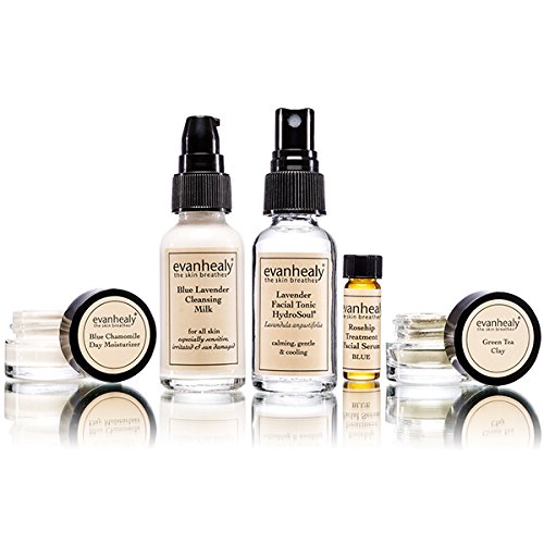 Blue Lavender Cleansing Milk (1oz), Lavender Facial Tonic (1oz), Rosehip Treatment Facial Oil (0.13oz), Blue Chamomile Day Moisturizer (0.2oz), Green Tea Clay (0.1oz).