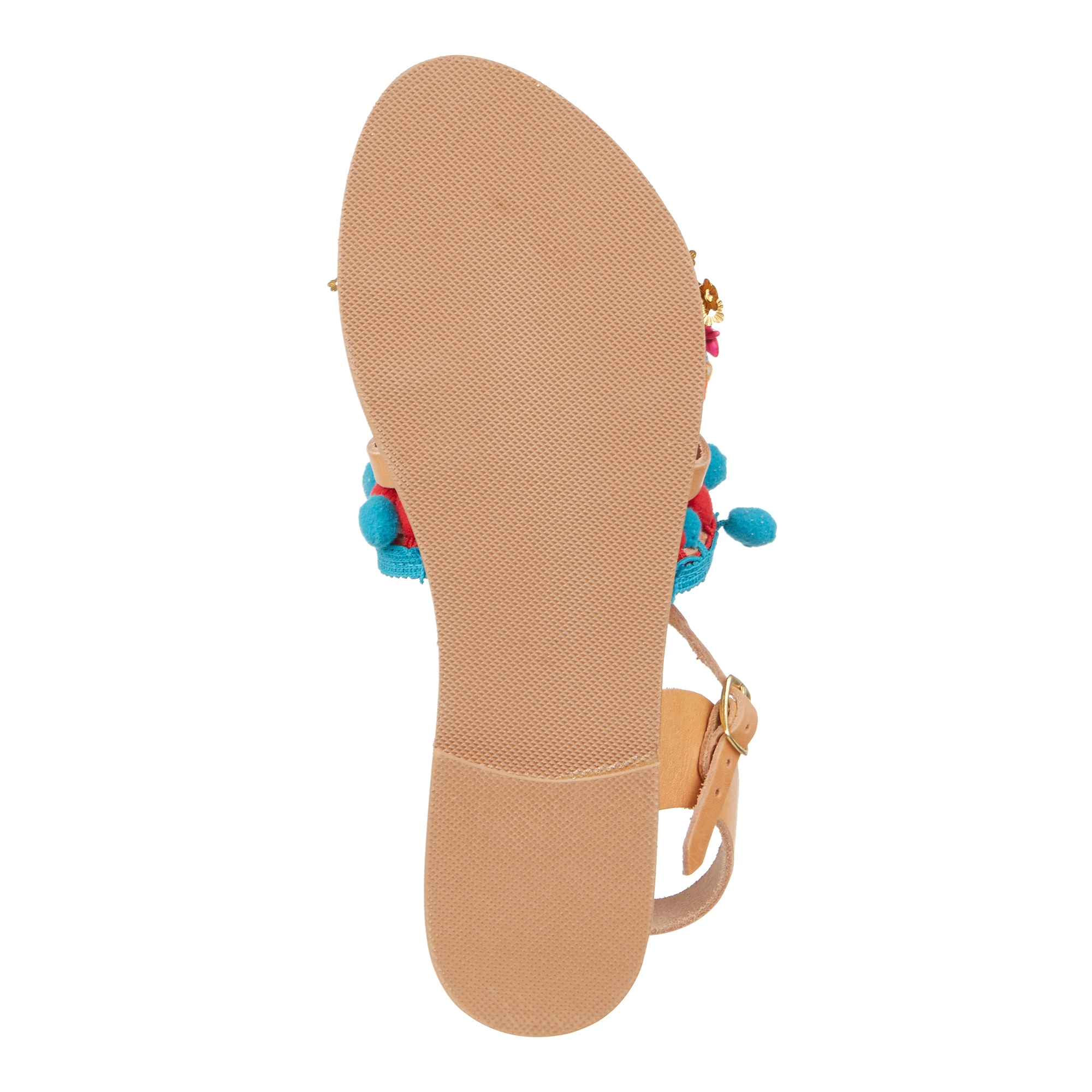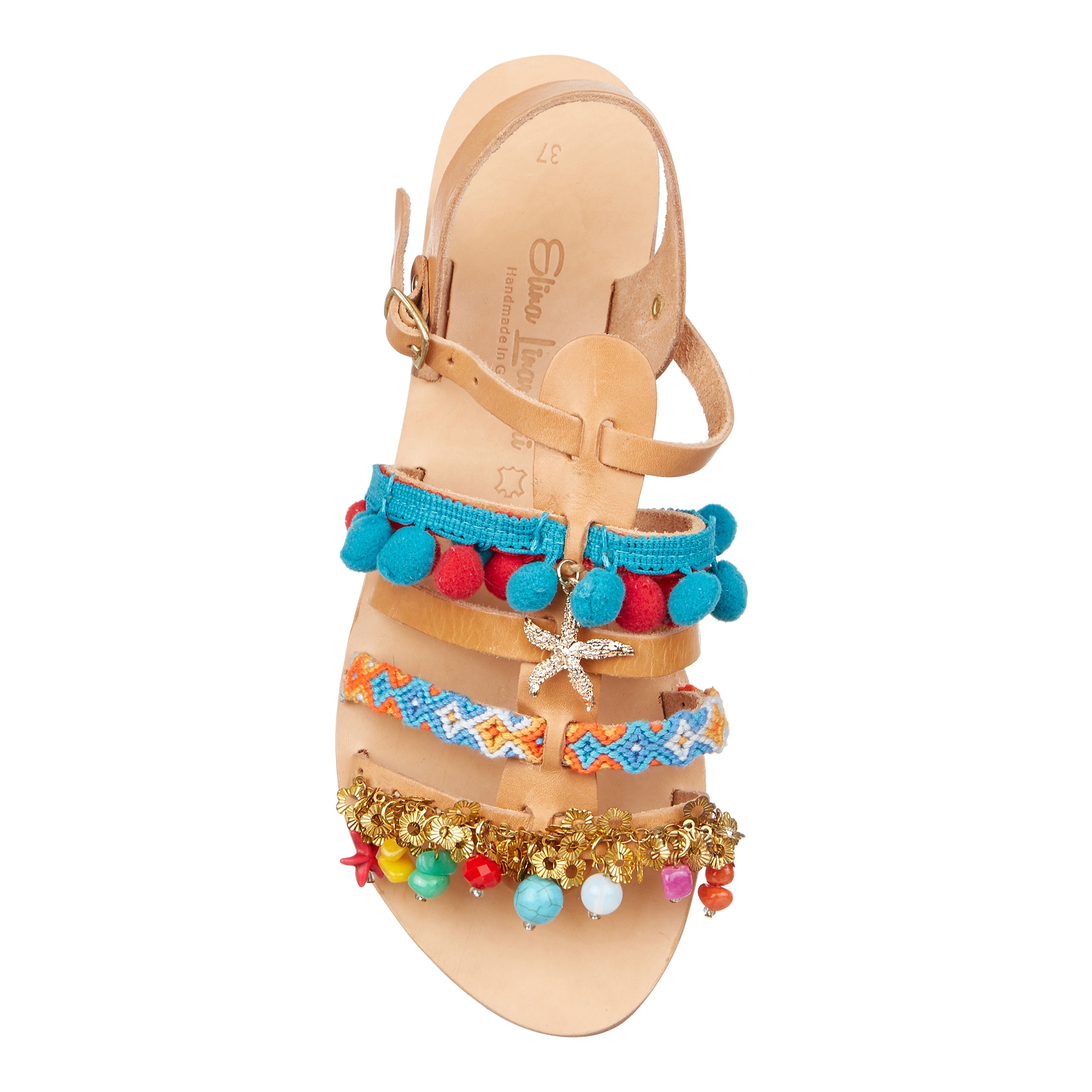 컬렉션 : 2017 Spring/Summer 디자인 포인트 : - 엘리나 리나다키 만의 폼폼장식과 각종 핸드메이드 장식품이 돋보임- 그리스에서 만들어진 에스닉한 스타일의 샌들 스타일링 추천 : - 청바지나 스커트 모두 잘 어울리는 여름 포인트 아이템 매칭 가능함- 길이가 정사이즈보다 살짝 작으므로 발볼이 있으신 분은 한 사이즈 크게 주문권장함