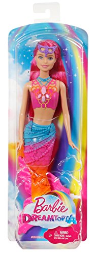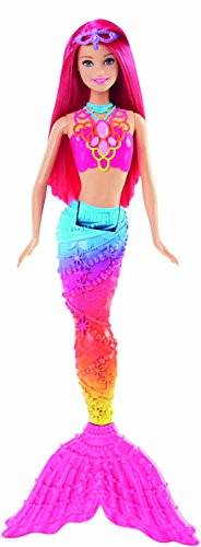 Studio : Mattel Publisher : Mattel Binding : Toy Product Description This wonderfully colorful mermaid makes a marvelous splash in the sea! A gorgeously decorated tail, detailed accents and color-streaked hair set imaginations sailing. Inspired by her fairytale rainbow kingdom, she wears a plastic pink bodice with an attached rainbow-bead necklace and has a vibrant ombre rainbow tail in neon colors. A removable matching headpiece looks adorable in her long pink hair. Tell all kinds of tales with this gorgeous mermaid, and collect them all to expand the fairytale fun and storytelling possibilities, because with Barbie, you can be anything (each sold separately, subject to availability). Includes mermaid doll with removable hairpiece. Doll cannot stand alone. Colors and decorations may vary. 0