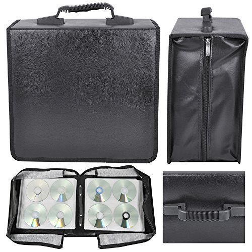 -. Feature : A stylish CD/DVD wallet with imitation leather finish / Protects from dust, scratches and sunlight / Holds up to 400 CDs/DVDs / Color: Black / Dimensions: 12.4x 6.3 x 11.4 inch
