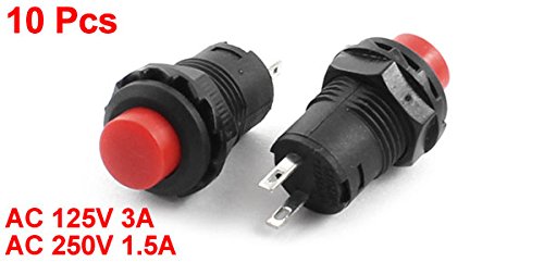 Uxcell a14101000ux0766 DS228 SPST Latching Pushbutton Switch, 10 Piece, AC 125V, 3 Amp, AC 250V, 1.5 Amp, 12 mm
