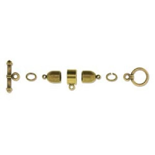 Beadsmith Kumihimo Antique Brass Plated Finding Set, 6mm Bullet End Cap