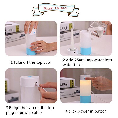 Multifunktions: Es kann verwendet werden als ein Schlafzimmer Luftbefeuchter, ein Auto Luftbefeuchter, eine Nacht Lampe und Desktop-Deko. Einheit kann auch verwendet werden, um Luft zu reinigen, verbessert die Qualitat der Luft beim Atmen.