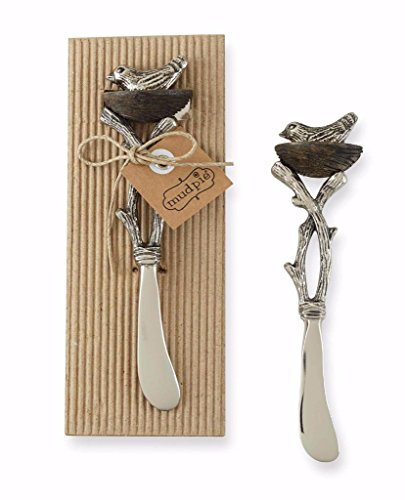 Mud Pie Nest Collection Metal Sculpted Branch Bird Wood Nest Handled Spreader, Set of 2