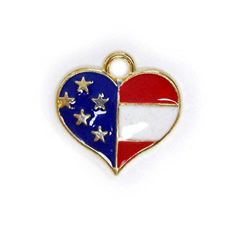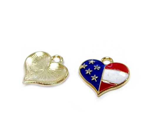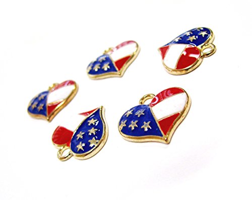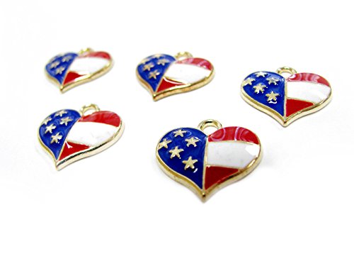 Linpeng 5 Piece Gold Tone Patriotic Heart American Flag Pendant Charm Set