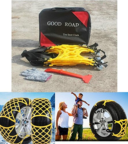 Bentolin 2016 Anti Slip Chain/tire Chains of Car,SUV, Snow Tire Chains, Fully Enclosed Universal Emergency Pure Tendon Thickening Anti-skid Chains(set of 6),give Snow Shovel, Glove