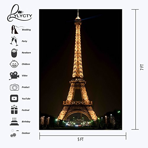 LYLYCTY 5×7ft Lights up the Night Paris Eiffel Tower Photography Backdrop Photo Studio Background Props wall-251