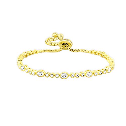 -. Title : Sterling Silver Round White Cubic Zirconia Adjustable Chain Tennis Bracelet, Rhodium & Gold Plated