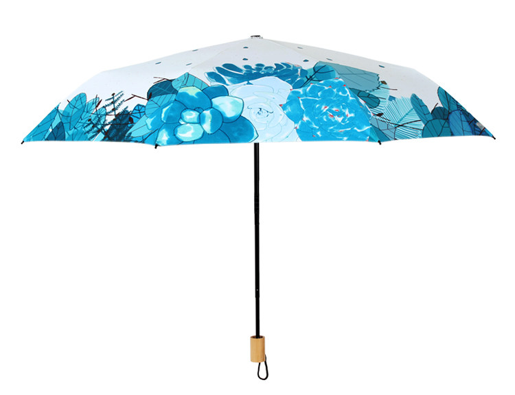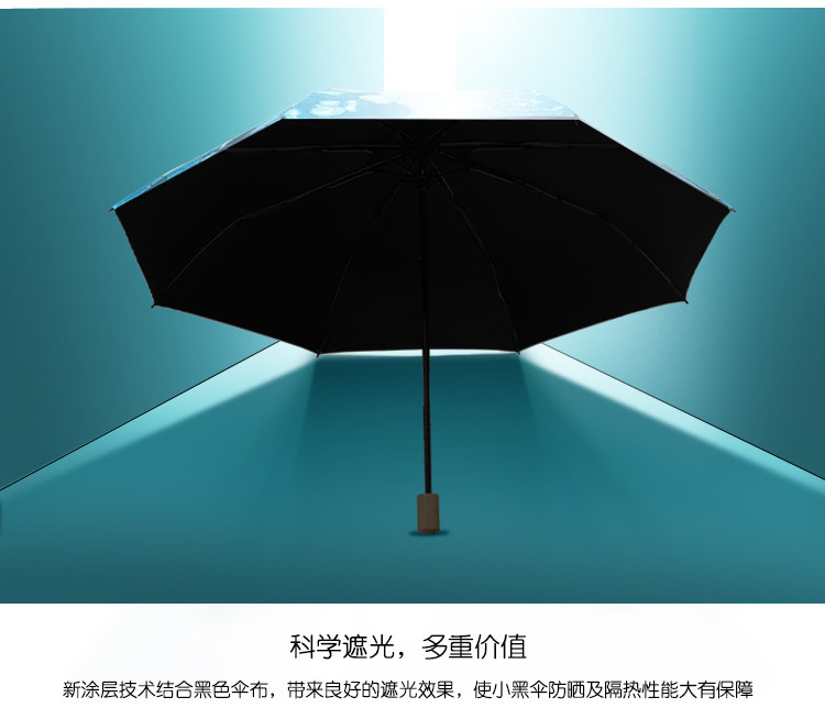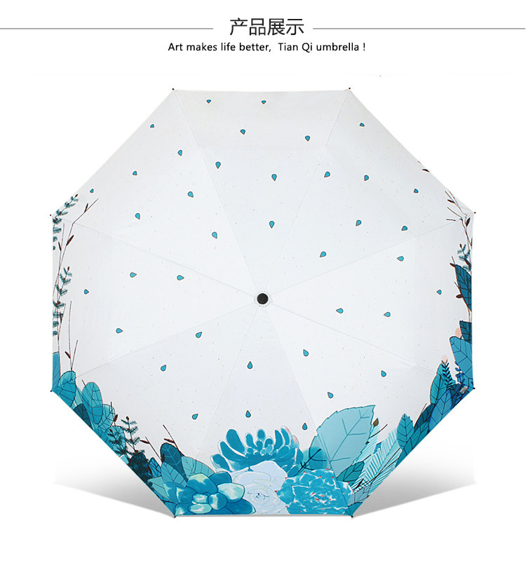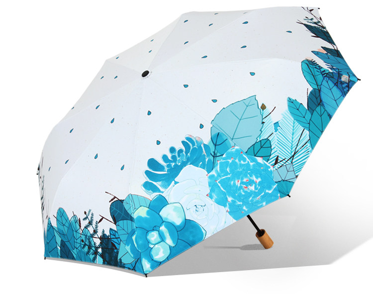 创意手绘多肉值物小清新黑胶防紫外线太阳伞防晒遮阳伞女折叠雨伞