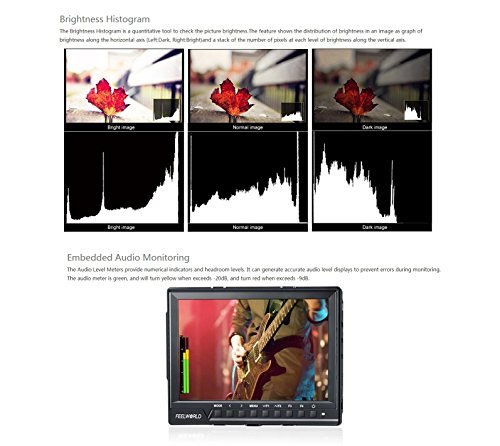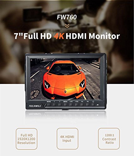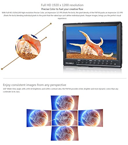 Feelworld FW760 7 Inch IPS Full HD 1920x1200 On Camera Field Monitor 4K HDMI Output With Peaking Focus Assist Histogram Zebra Exposure - 1200:1 Contrast 450cd/m2 Brightness 160 Degree Viewing Angle