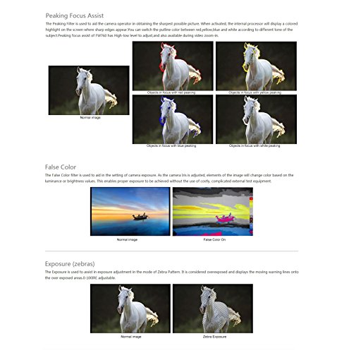 Equipped with Exposure Control Features including Histogram, False-color, Zebra-marking. Capturing true exposure data in your image even under extremely bright sunny outdoor conditions.