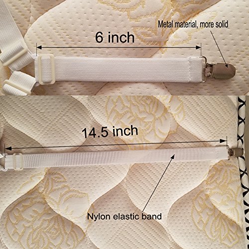 - Widely used:These sheet grippers secure your sheet corners diagonally across any size mattress, and make your life easier.Great for fitted or flat sheets on different type of beds such as standard size, odd shaped beds, foam beds, pillow top beds,air mattresses, RV's and travel trailers and more.